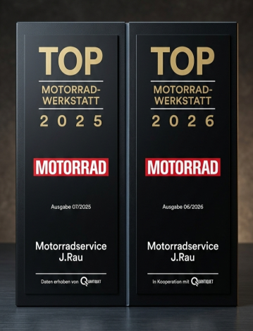 Zweites Jahr in Folge vom renommierten Fachmagazin "Motorrad" als Top Motorradwerkstatt ausgezeichnet.